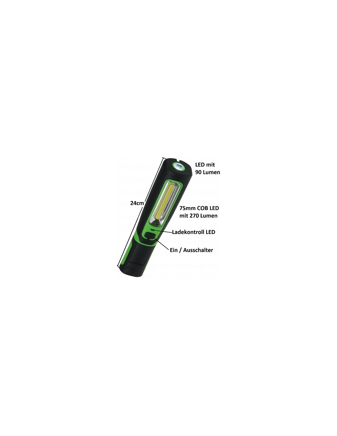 Professionelle, kräftige und höchst flexible LED-Arbeitsleuchte mit Akku, Haken und 2 kräftigen Magnethaltern. Griff dreh- & schwenkbar - so haben Sie Licht genau dort, wo Sie es brauchen. 2 Helligkeitsstufen. Ergonomische und griffsichere Softgummi-Beschichtung. Flexibler Einsatz durch Akkubetrieb (2.2Ah LiIonen Akku). Inkl.230V-Netzteil und 12V Ladegerät. Leuchtet ca. 2.5-3 Std. mit einer Akkuladung. LED-Stableuchte mit Akku "FlexiLED 300", 3W, 4500K, 270 Lumen, 2 Ladegeräte, Haken, Magnethalter, Kabel, 24 x 5 x 4, gruen/schwarz, Taschen- und Arbeitslampe.