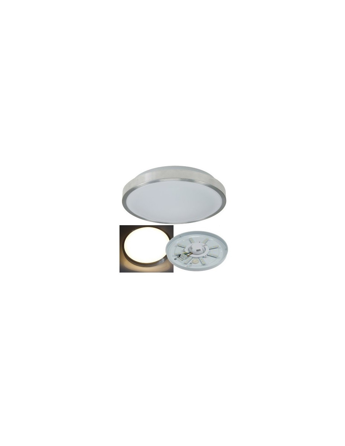 Elegante Deckenleuchte mit formschönem UV-beständigem Kunststoffgehäuse mit eleganter matter Abdeckung und ALU Aussenring. Schutzart IP44: Auch für Feuchtraum & Aussen geeignet! Anlaufzeit <1 Sek. LED-Deckenleuchte 12W, 26cm, SMD LEDs Typ 2835, 230V, 3000K/4500K, 700Lm, Alu-Ring, 26 x 10, weiss,Alu, Installationhöhe: 2-4 m.