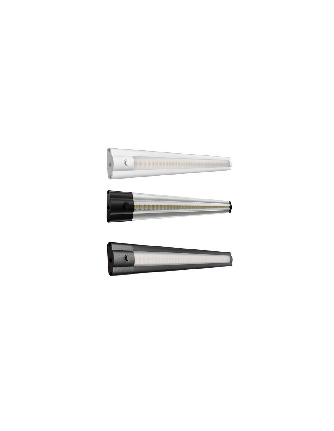 Die geschmackvollen 24V 30cm Unterbauleuchten aus Aluminium sind 9mm flach und eine sehr gute Wahl zum Einsatz in Küche oder Werkstatt, Gastronomie und Geschäften. Die Leuchten verfügen über sehr leistungssarke SMDs LEDs. Alle universellen Typen verfügen beidseitig über 3.5mm Koaxialbuchsen zur Spannungsversorgung und können darüber auch miteinander auf bis zu maximal 4 Meter (400cm) erweitert werden. LED Aufbau-Unterbau Leuchte "SIRIS-30_2", 4W, 30cm, 24V DC, 2700K/4100K, 370Lm, sichtbare SMD LED, Schalter, 30 x 3 x 0.9, silber/grau, Aluminium, EIN/AUS Schalter.