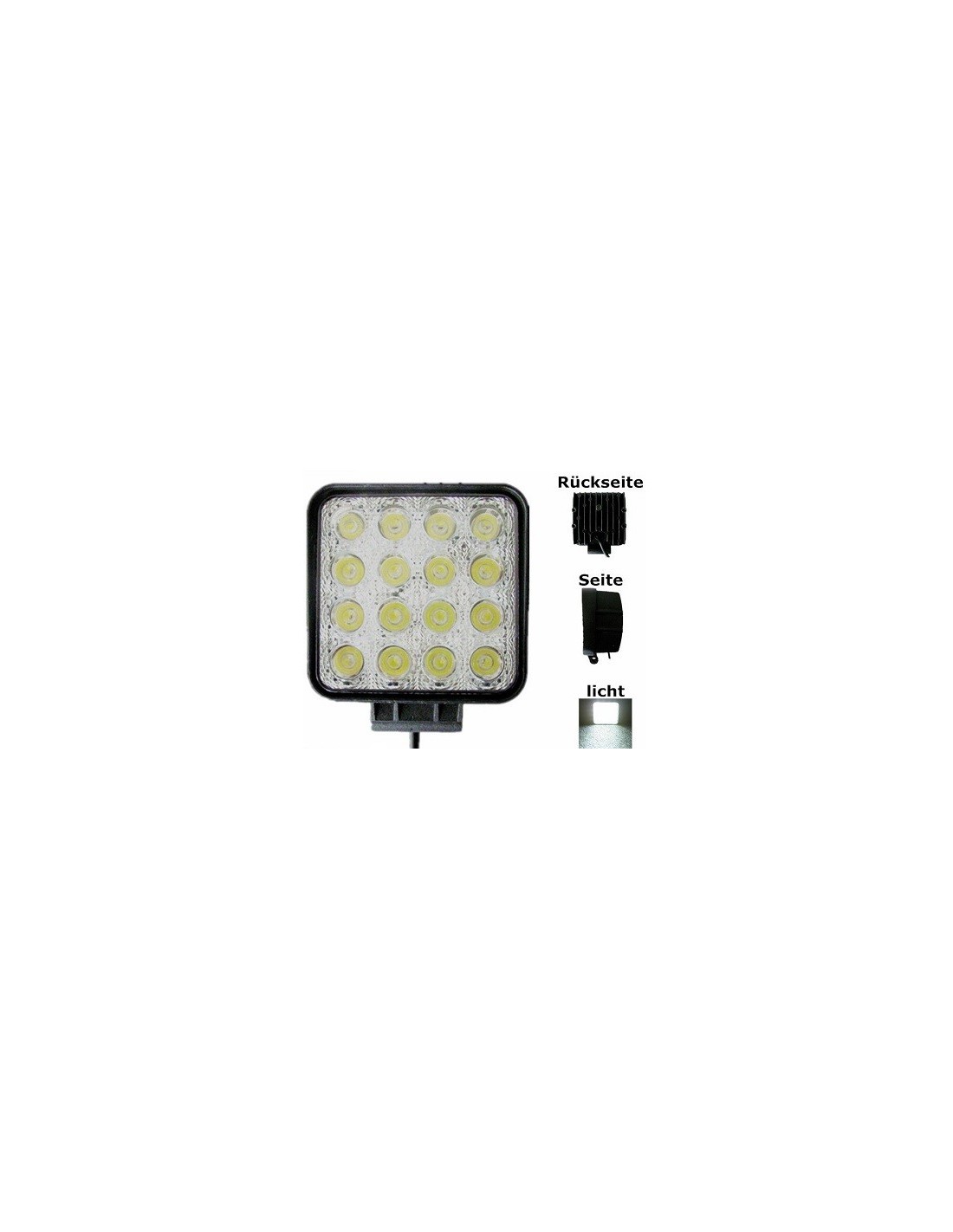 Mit diesem 48W LED-Arbeitsscheinwerfer ersetzen Sie Ihre alten FL-, Glüh- oder Halogenleuchten auf die neue LED Technologie. Die Leuchten verfügen über leistungssarke LEDs. Ohne ECE-Prüfzeichen. Es gibt sie in den verschiedensten Ausführungen, Grössen, Lichtfarben und Leistungen. Mit ansprechendem Design und optimalem Licht. Schutzklasse IP67. Indoor & Outdoor KFZ, LKW, Auto, SUV usw. Beleuchtung. LED-Arbeitsscheinwerfer "Offroad 48Q-F" 48W, 10V-30V, 12V, 6500K, 4'300Lm, 11 x 11 x 7.2cm, 90 Grad verstellbar, schwarz, AL,PMMA, Favoriten-Version.
