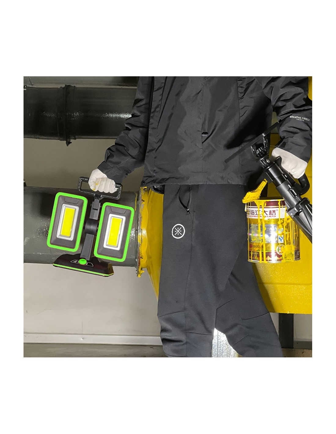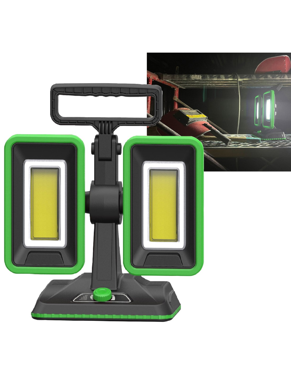Kompakt, griffig und stark in der Leuchtkraft! Diese Baustrahler lassen sich jeweils frei drehen- und sind schwenkbar für die bestmögliche Ausleuchtung. Leuchtkraft (gesamt) dimmbar 1000-5600Lm. Matte Acrylfront zwecks geringerer Blendung. Zeit für vollständige Aufladung ca.10 Stunden. Integrierter Li-Ion Akku 11.1/6000mAh. Inklusive 230V Stecker-Ladegerät USB-C 5V/2A. LED-Baustrahler "DUO-60", 2 x 30W, Akku, SMD-LED, 4500K, 1'200-5'600Lm, inkl. LI-Ion Akku, 32.0 x 23.2 x 13., grün/schwarz, Kunststoff, Betrieb nur mit Akku!.
