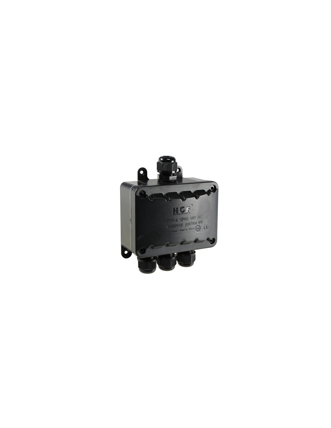 Sicheres und einfaches Verbinden von Kabeln im Aussenbereich. 4 Pol-BOX Verbinder (1 Eingang + 3 Ausgänge). IP66/wassergeschützt. 4 polige Kabelverbindung für insgesamt 4 Stromkabel von 5-10mm Ø. Stabiles Kunststoffgehäuse. Kabelverbinder 4 Pol-BOX, 230V, IP66 wasserdicht, für 4 Kabel von 5-10mm Durchmesser, 1 Eingang und 3 Ausgänge, 13.5 x 10.8 x 4.5, schwarz, für 4 Kabel von 5-10mm.