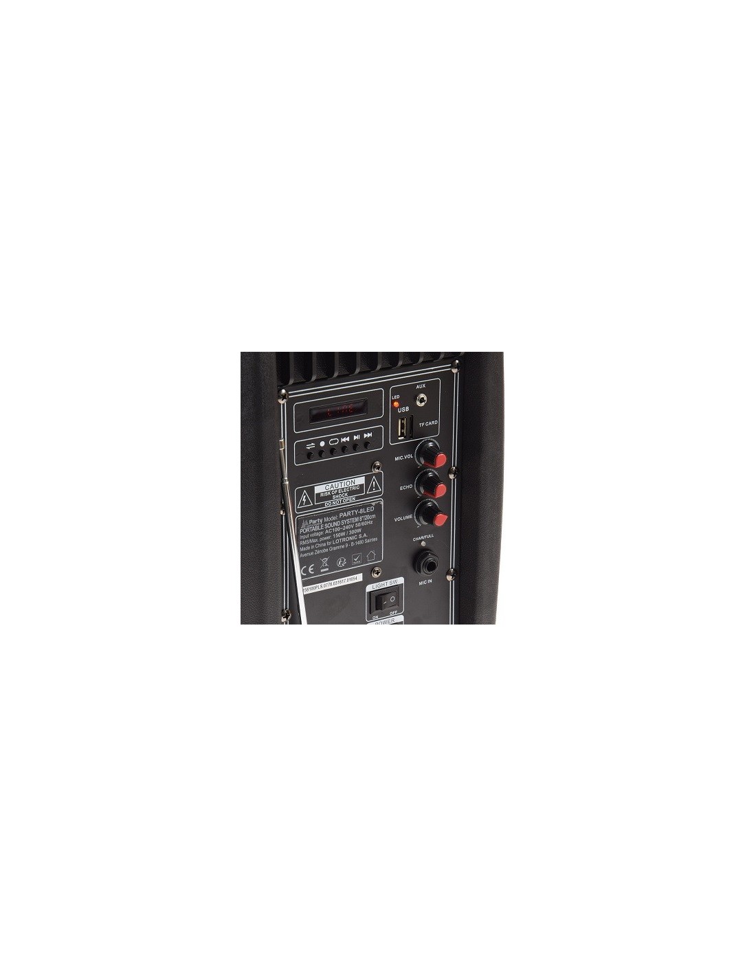 HMMobile Soundsystem "Port-08 LED", 300W mit Mikrofon, USB, Bluetooth & Radio Speaker, 230V und Akkubetrieb