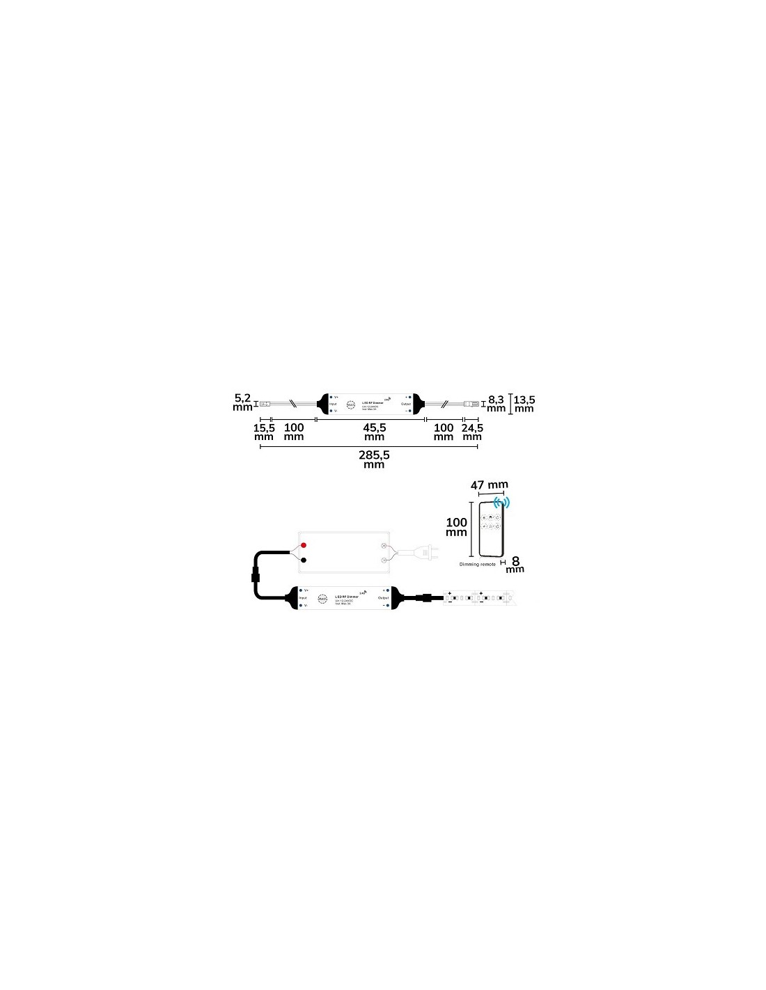LED Funk PWM-Dimmer MiniAMP inkl. Fernbedienung, 12-24V DC, 3A. Sendefrequenz 2.4GHz, Reichweite bis zu 20 Meter, PWM Frequenz 500Hz. Ist auf der primären Seite des 12-24V Konstantspannungs-Transformators zu installieren. Benötigt also keinen dimmbaren Trafo. Funk PWM-Dimmer "MiniAMP", 12-24V DC, 3A, Funk PWM-Dimmer für das Stecksystem MiniAMP, weiss, Kunststoff, Funk Dimmer PWM.