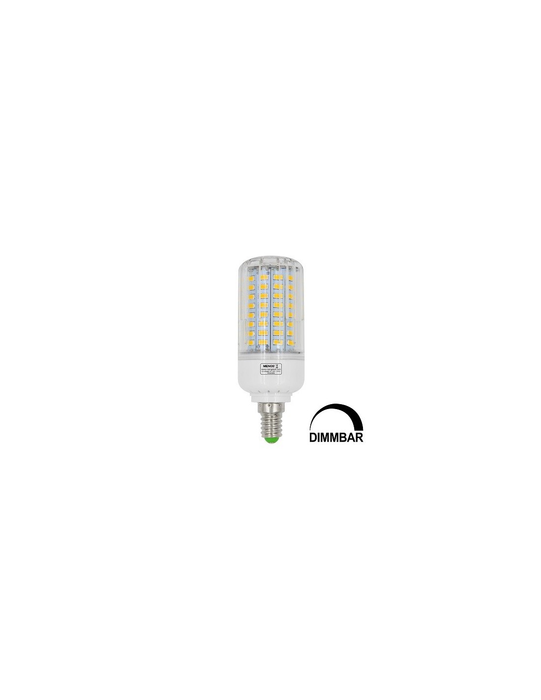 E14 Corn- Korn- Kolben- LED-Leuchtmittel mit dem kleinen Schraubgewinde finden ihren Einsatz als Ersatz von starken Glühbirnen, Halogen- oder Quecksilberlampen. Sie haben einen sehr grossen Abstrahlwinkel. Je nach Lichtfarbe und Leistung eignen sich diese hellen und robusten Leuchtmittel in grossen Werkstätten, Werkhöfen, Lagerräumen, Aussenbeleuchtungen, Strassenlampen usw. Überall dort, wo es einfach hell sein muss. LED-Lampe, Korn Kolbenlampe E14, 12W, dimmbar, 3200K, 960Lm, 96x5736 LED, Ersatz 90W, 11.8 x 4.3, PVC/Aluminium, Energy-Saving Light.