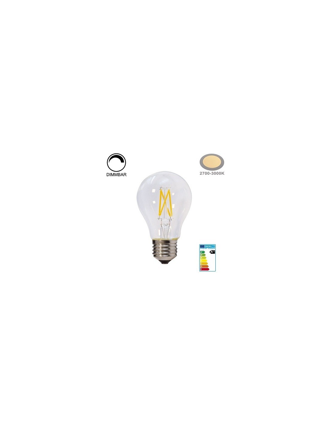 E27 LED Lampe, Birne "Filament", 6W, dimmbar, 230V, 2800K, 600Lm, klar, Ersatz 50W