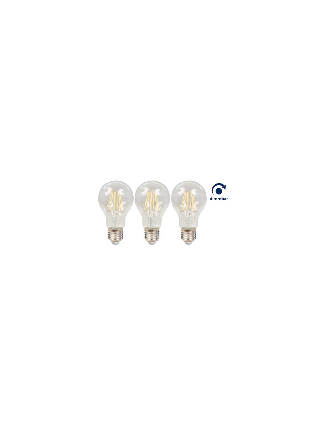 E27 LED-Leuchtmittel mit dem grossen Schraubgewinde finden Sie fast überall. Ihr vielseitiger und universeller Einsatz ist einfach einzigartig und fast unvergleichlich. Je nach Grösse, Form, Lichtfarbe und Leistung eignet sich dieses "heimelige" Leuchtmittel im speziellen für dezentes Licht in Lichterketten, Bars, Gartenwirtschaften usw. LED Lampe Birne "FILED A60" E27, 7.5W, klar, dimmbar, 230V, 2700K, 800Lm, 330 Grad, Ersatz 70W, 3 Stück, 10.6 x 6, Inhalt: 3 Stück.