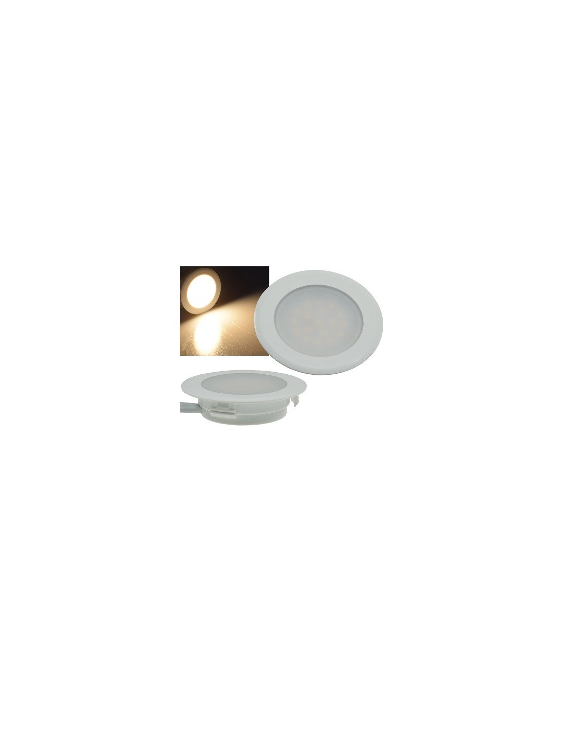 Elegante LED-Einbauleuchte für den direkten Anschluss an 230V AC - kein Trafo notwendig. Ideal für z.B. Decken oder Wände - dank der 65mm Ø ideal für den Einbau in handelsübliche Schalterdosen. 9 weisse LEDs hinter gefrostetem Kunststoff-Cover für den behaglichen Wohnbereich mit nur 2.2W Verbrauch, inkl. 35cm Zuleitung. Betrieb an 230V= AC. LED-Einbauleuchte "EBL HV65w", 230V, 2W, 7.4/6.0cm, 230V AC, 3000K/4200K, 200Lm (20W), IP44 geschützt, 7.4 x 6.0 x 1.6, weiss, Kunststoff, matt, direkt 230V, 35cm Ka