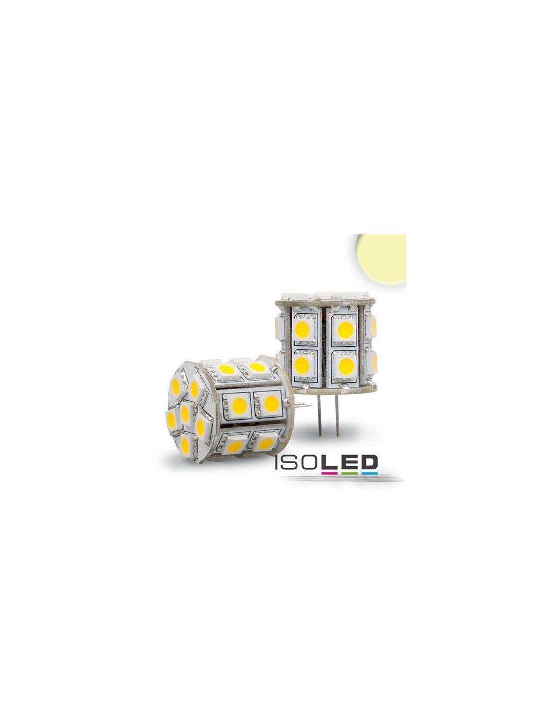 Diese tolle 4W G4 und GU4 LED-Leuchtmittel mit dem Stiftsockel ist speziell für den Niederspannungseinsatz (12V AC/DC) konzipiert worden (Fahrzeuge, Camping, Solar, Hobby usw.). Mit Kunststoffsockel und für AC und DC geeignet. Je nach Ausführung, Lichtfarbe und Leistung eignen sich die 12V G4 Leuchtmittel mit GU4 Sockel für den universellen Einsatz im Innen- oder Aussenbereich. LED-Stiftsockellampe G4, 4W, 12V AC/DC, 20 LED's, 3000K, 350Lm, 34x23mm, Ersatz 35W, 3.4 x 2.3, Kunststoff.