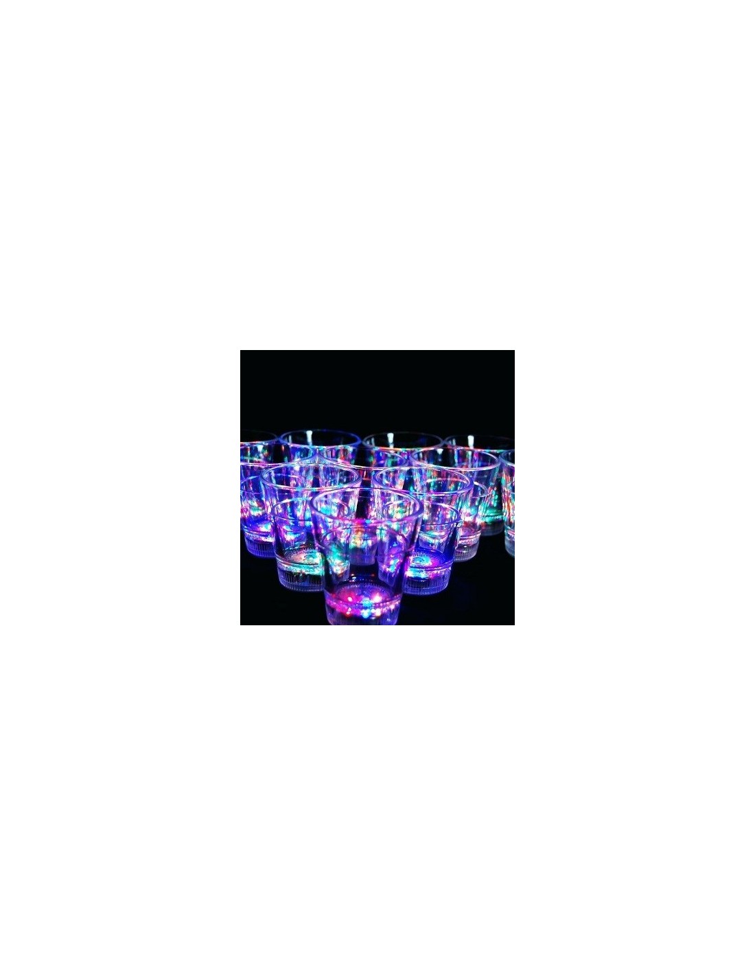 Lassen Sie Ihr Getränk leuchten. Die LED Shotgläser sind ist 6 cm hoch und haben einen Durchmesser von 5 cm am oberen Rand. Das Fassungsvermögen beträgt 4 cl. Die Gläser sind aus klarem, festem Kunststoff. Im Glasboden befinden sich 3 LEDs (1 x rot, 1 x blau und 1 x grün). Der Ein- und Ausschalter befindet sich an der Unterseite der Gläser. LED-Shot Glas, 4cl, multicolor, 6 Stück, inkl. Knopfbatterien, Kunststoff, blau/rot blinkend.