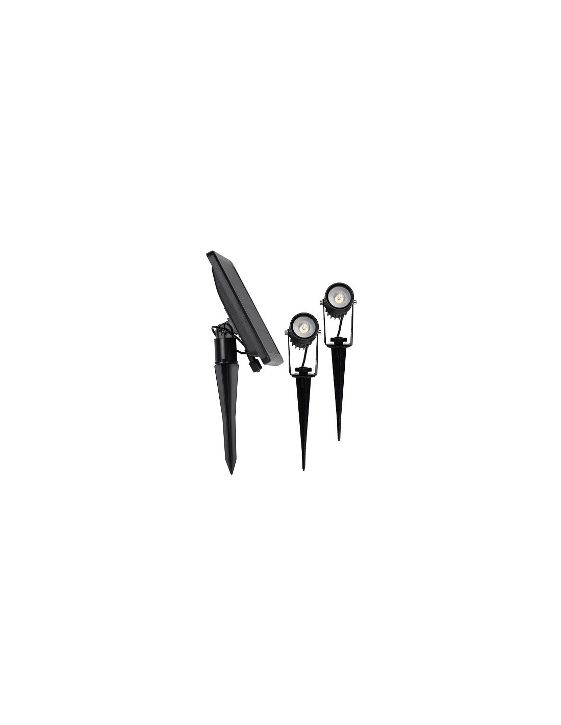 2er Set Gartenleuchten für den autarken Betrieb um Haus und Garten. Die Aussenleuchten können Aufputz angeschraubt oder mittels Erdspieß direkt am Wunschort im Beet, am Busch/Baum montiert werden.Eingebauter Dämmerungssensor. Die 2m langen wettergeschützten Verbindungskabel sorgen für Freiheit bei der Wahl des Ortes. Das warmweiße Licht setzt Ihre botanischen Lieblinge richtig in Szene und vermittelt ein gemütliches Ambiente. Leuchtzeit 6-9 Std. LED Solar-Gartenspot, 2er Set, 2 x 3W, 3000K, 2 x 150Lm, inkl. Solarpanel und Akku, wetterfest, schwarz, Kunststoff/ABS, 2 Spot inkl. Panel.