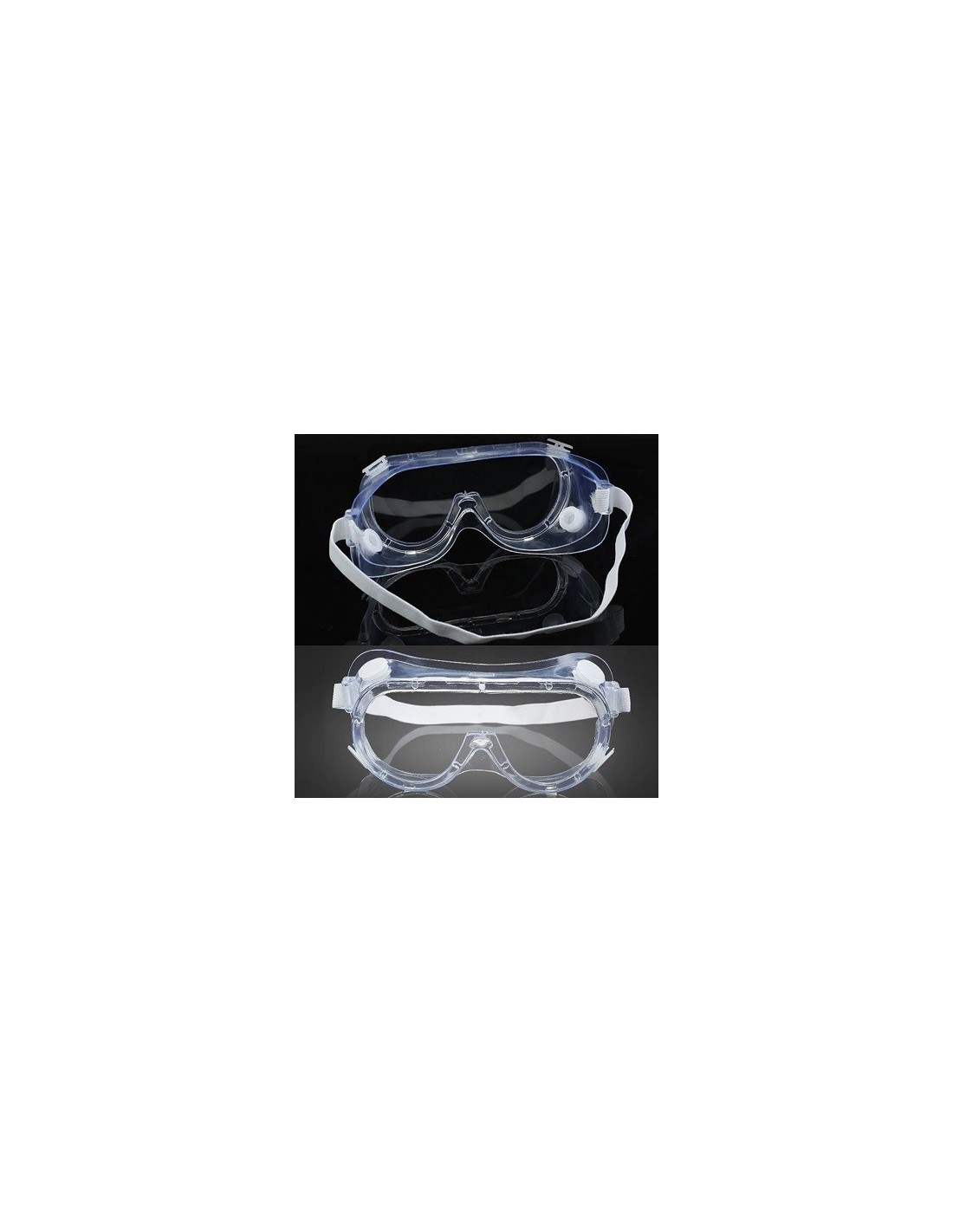 Schutzbrille mit Ventil sowie verstellbarem Gummiband, schützt gegen Speicheltropfen, Spritzer und Staub, Belüftungsventile, verstellbares Gummiband für alle Kopfgrössen. Geeignet für Brillenträger, sehr flexibel. Nach EN 166 :2001, NF EN 166:2002, PPE Type II. Sicherheit Labor Schutzbrille mit Ventil und Gummiband, Schutz vor Speicheltropfen, Spritzer und Staub, transparent, Kunststoff .