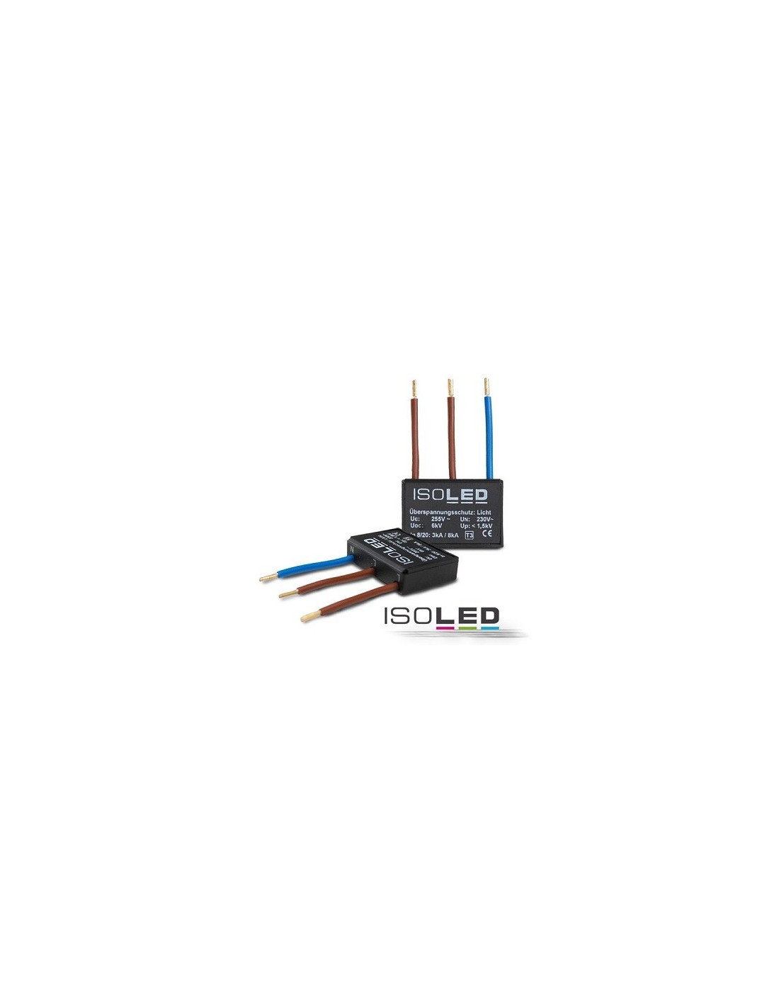 Kompatibel für alle Dimmerarten. Kombinierter Stoss UOC: 6kV, Schutzpegel: 1.5kV, Nennableisterstossstrom 8/20: 3kA/8kA, Schaltstrom: 3A, Kabellänge:44mm. Und 230V/AC Überspannungsschutz nach EN 61643-11. Überspannungsschutz, Feinschutz für LED Technik, T3, 230V, gegen Überspannung, Schutz ihres Lichtkreises, 3.7 x 2.4 x 0.9, schwarz, Kunststoff, Für den Innenbereich.