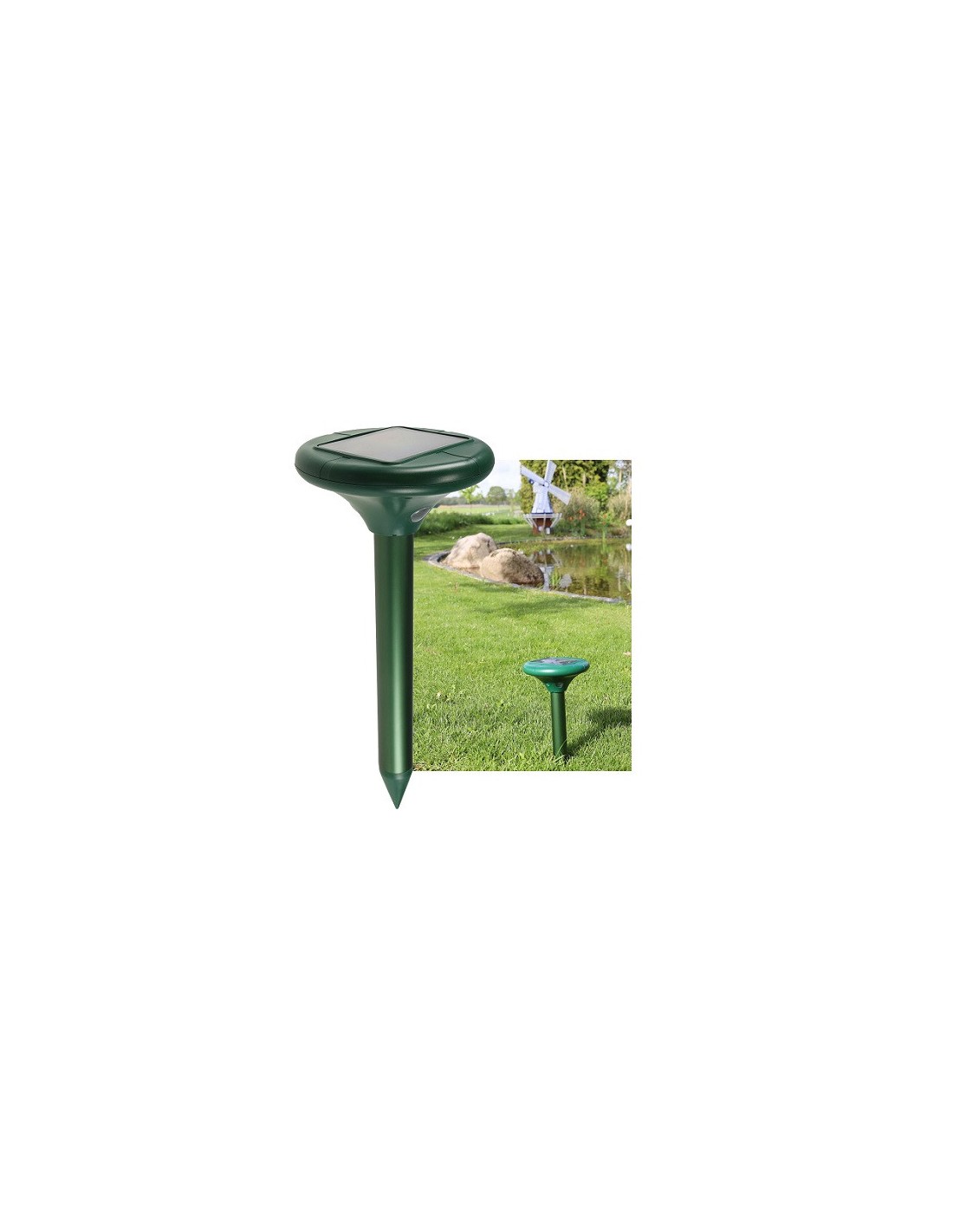 Diese Profi-Wühltierscheuche befreit Sie als Gartenfreund von den lästigen Erdhaufen auf Ihrer schönen Rasenfläche. Die Maulwurfscheuche macht den kleinen Buddelmeistern das Leben mit Vibration und pulsierenden Schallwellen gleich doppelt unangenehm. Stromversorgung über mitgelieferten 1.2V/800mA Mignon Akku + Solarzelle. Verscheuchen Sie die ungebetenen Plagegeister mit Geräuschen und Schwingungen! Der Abwehrbereich beträgt ca. 900m2. Mit Ein/Aus Schalter. Frequenz 400-1000Hz. Maulwurf- + Wühlmaus-Schreck "Premium Solar", Akkubetrieb, Schall + Vibration, bis zu 900m², 36, grün, Kunststoff, Wirkungskreis bis 900m2.
