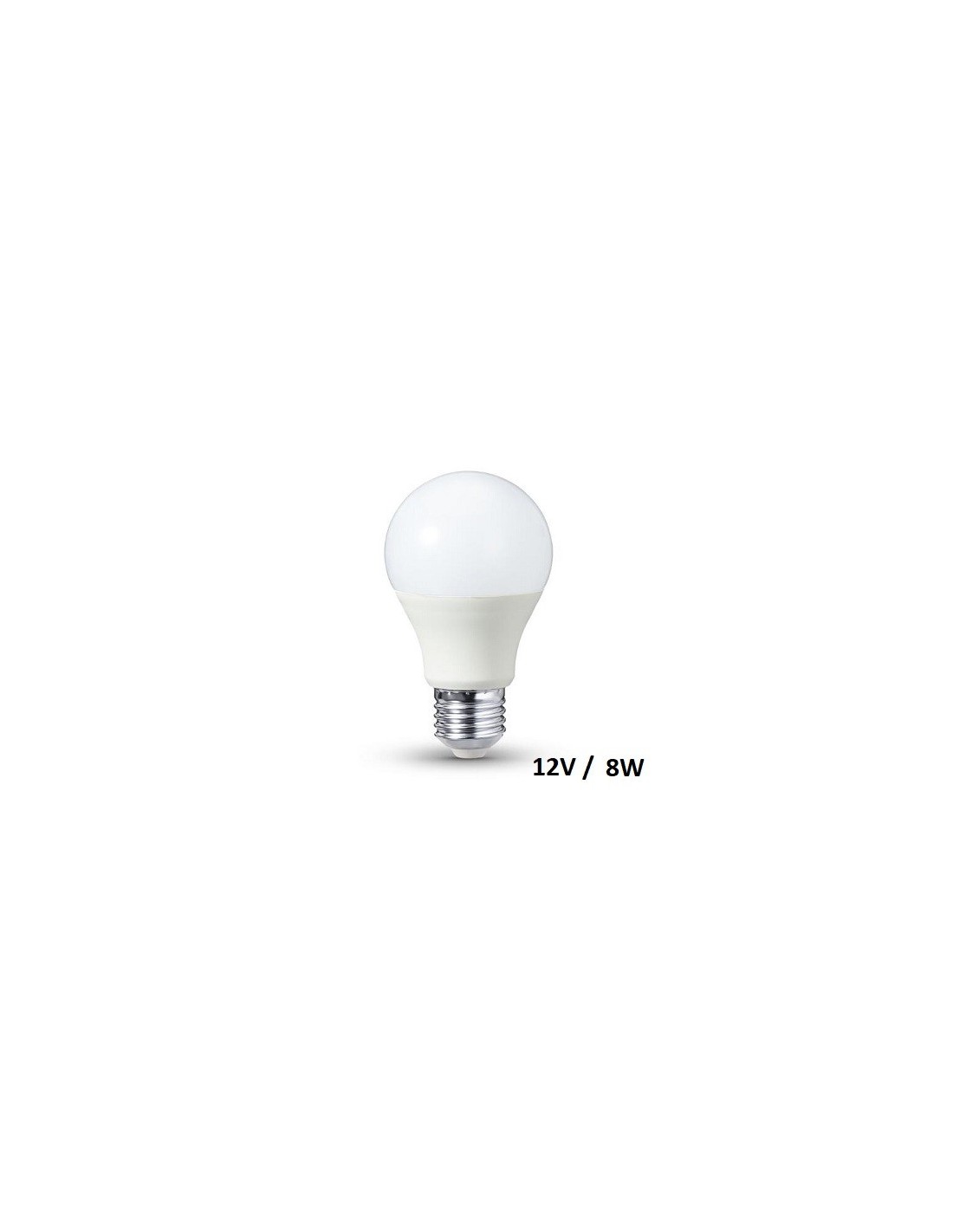 Niedervolt 12V/24V AC/DC E27 LED-Leuchtmittel mit dem grossen Schraubgewinde finden Sie im Photovoltaik-, Solar-, Camping- oder KFZ und Boot Bereich. Ihr vielseitiger und universeller Einsatz ist einfach einzigartig und fast unvergleichlich. Diese tollen LED energiesparenden Lampen finden Verwendung im Garten, im Wochenendhaus, im Wohnmobil, auf einem Boot usw. Dank der spez. Niedervolt 12V/24V Technik auch für den direkten Batterie- und Solarbetrieb geeignet. LED-Lampe, Birne E27, 12V oder 24V DC, 8W, 12V-24V DC, 3000K (warmweiss), 800Lm, Ersatz 50W, 11.2 x 6, weiss, Kunststoff/Alu, 12-24V DC.