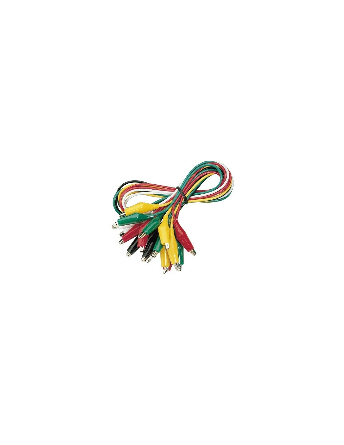Kroko-Schnellverbinder-Set. 450 mm lang. Beidseitig je eine farbige isolierte Krokoklemme. Ideal für schnellen Aufbau von Schaltungen oder Prüfvorrichtungen im Niedervoltbereich bis max. 2 Ampère. Zehn farbige, fertige 45-50cm-Kabel/Strippen in 4-5 Farben. Mit isolierten Krokodilklemmen auf jeder Seite. Krokoklemmen-Satz "GT-1810", 10 teilig, 50 cm Kabellänge, in 4 verschiedenen Farben, 5 Farben, 50cm Kabel.