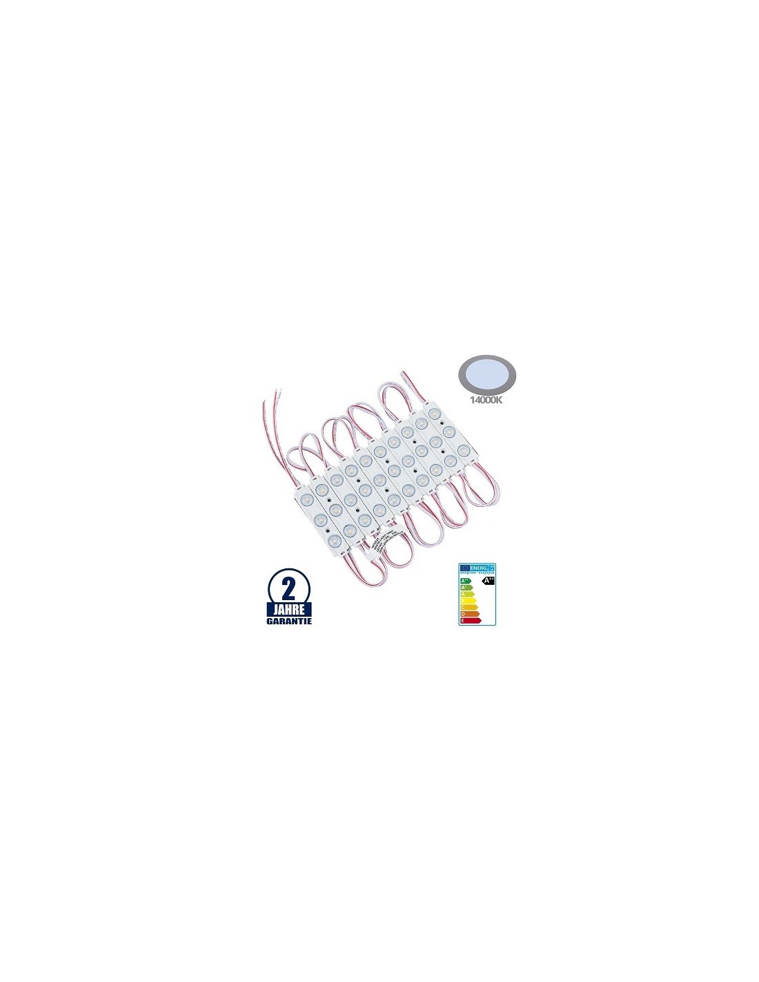 Diese 3.40 Meter lange, 1.5W pro LED Modul (20 Stk.) sind dank seine geringen Masse ein idealer Ersatz für "normale" FL oder Glühlampen Werbe-Leuchtmittel! Maximal 40 Module in Reihe/Serie schalten! Diese im speziellen für die LED Lichtwerbung hergestellten Module gibt es in verschiedenen Grössen, Lichtfarben und Lichtstärken. Befestigung: Wärmeleitendes, doppelseitiges Klebeband. LED-Leuchtwerbung Chip Modul, 1.5W/Stk., 12V DC, 3000K/6000K/12000K/R/G/B, 80Lm/W, IP65, 20 Stk., 7 x 1.5, weiss, Kunststoff, inkl. 2 adriges Anschlusskabel.