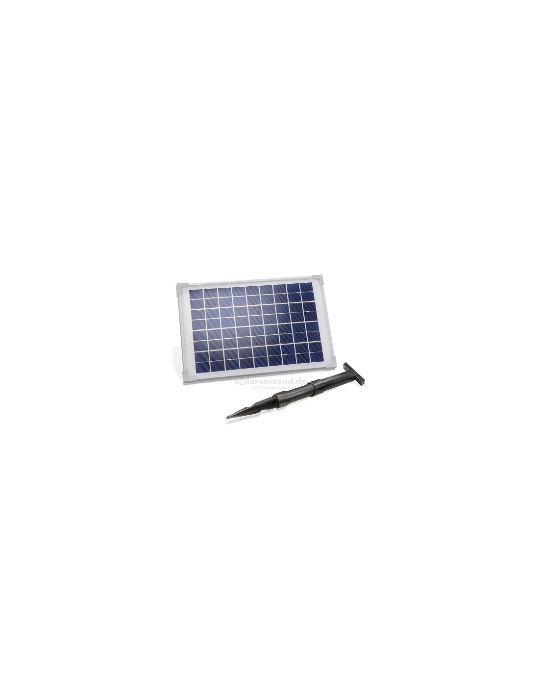 Solarmodul mit leistungsstarken polykristallinen Solarzellen wahlweise als Ersatzteil, oder zur Erweiterung von bestehenden Systemen. Ausführung mit umlaufenden Alurahmen, Glasfront und einstellbaren Erdspiess aus Kunststoff. Das 18 Volt, 10W Solarpanel besteht aus verschiedenen laminierten Schichten. Sehr schöne Optik, optimale Haltbarkeit und einfache Installation für ihre Teich- oder Bachpumpe. Nennspannung: 17.5V - Leerlaufspannung: 21.5V. Solarmodul, Panel "ET-18-10W", 10Wp, 18V, 580mA, 2 poliger Anschlussstecker, inkl. Halterung, 40 x 25.5 x 2.5, silber elox., Polykristallin