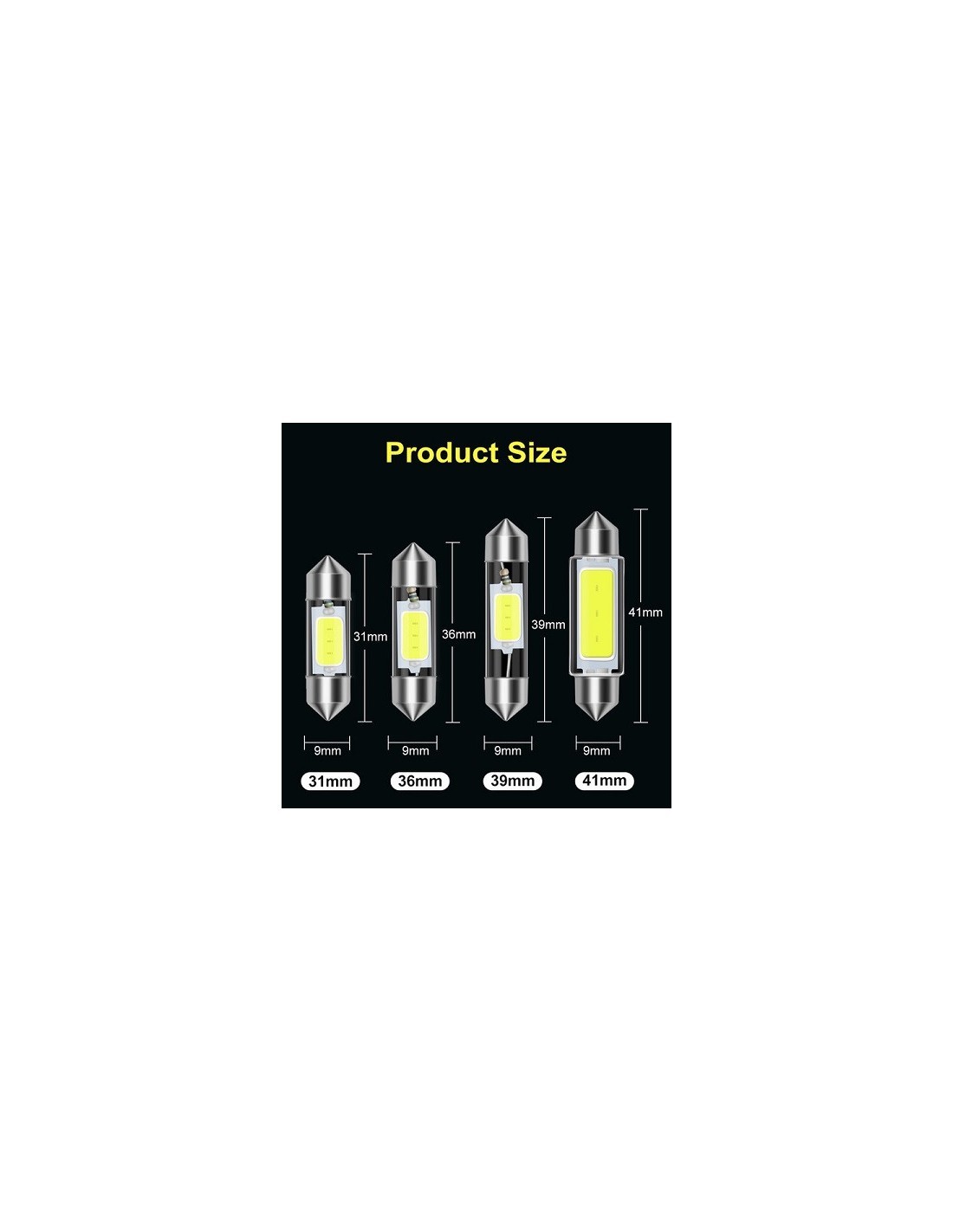 Diese hochwertige 1W COB LED SV8.5 Festoon Soffitten zeichnen sich durch tolle und hohe Lichtstärke aus, wodurch sie in nahezu jedem Bereich im Innenraum gegen die serienmässig verbaute C5W Soffitte ausgetauscht werden können. Soffitten gibt es in verschiedenen Grössen mit oder ohne CanBus in warmweiss oder kaltweiss und für die unterschiedlichsten 12V DC Einsätze. LED-Soffitte SV8.5, C5W, COB, 1W, 31/36/41mm, 12V, 6000K, 150/300Lm, 1 COB, Canbus, weisses Licht, 31mm/36mm/41mm.