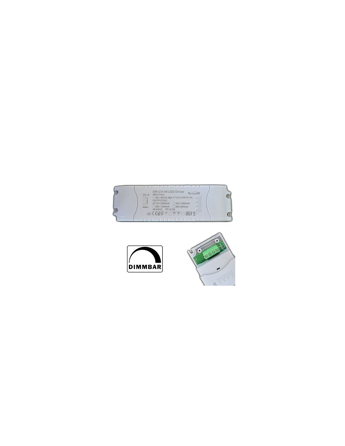 Mit diesem dimmbaren (Phasenabschnitt) 45W 12V/DC LED Trafo oder Treiber können Sie unterschiedliche LED-Leuchtmittel und Installationen fachgerecht installieren. Einfacher Anschluss über Schraubterminals (Eingang/Ausgang). Überspannungs - sowie Kurzschlussschutz. Ausgangsleistung: 45 Watt LED DC-Treiber/Trafo, 12V DC, 3A, 1-45W, dimmbar, rechteckige Bauform, Konstantspannung, 17 x 5.0 x 3.2, Phasenabschnitt dimmbar. MM geprüft.