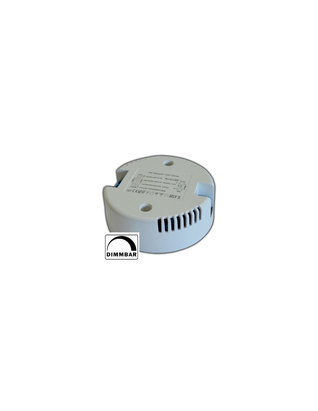 LED DC-Treiber/Trafo, 12V DC, 1-20W, 1.5A, dimmbar, 230V/12V, 20W, runde Bauform, Konstantspannung
