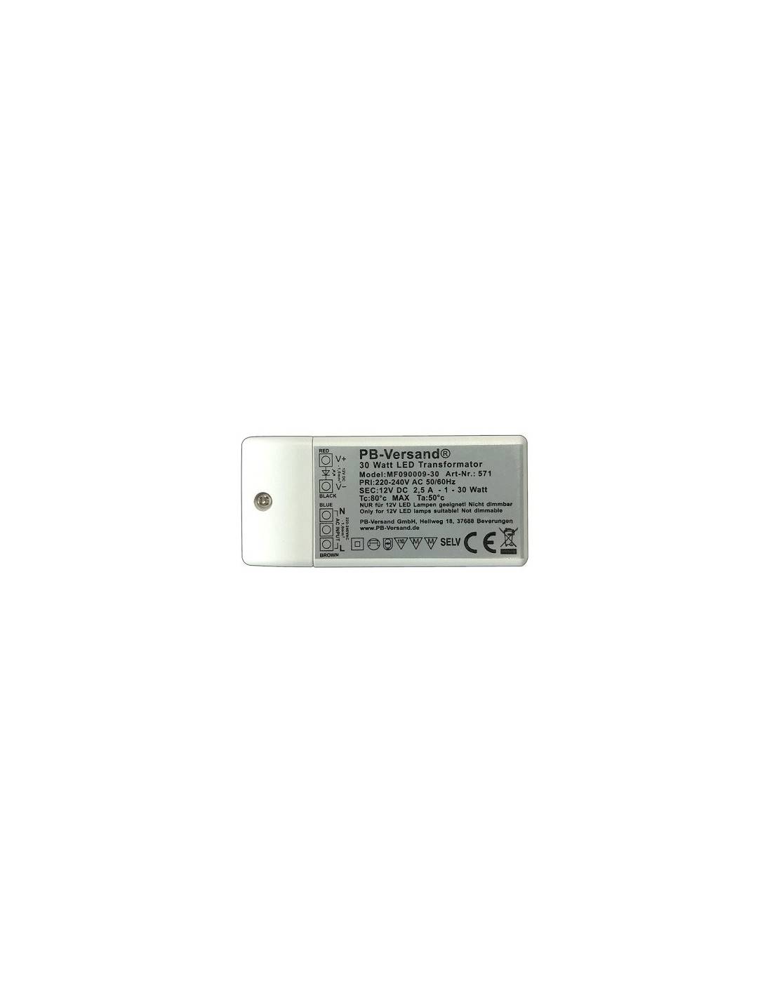 Mit diesem leistungsstarken 12V/DC LED Trafo oder Treiber können Sie unterschiedliche LED-Leuchtmittel und Installationen fachgerecht installieren. Die neue Generation von LED-Trafos sind sehr klein konstuiert worden. Überspannungs - sowie Kurzschlussschutz. Mit doppeltem M-Zeichen. Ausgangsleistung: 12V/2.5A/30 Watt. LED DC-Treiber/Trafo, 12V DC, 30W, 12V, 2.5A, Mini, rechteckige Bauform, Konstantspannung, 9.2 x 4.2 x 2 . MM geprüft.