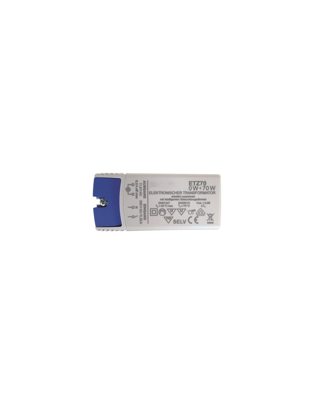 LED AC-Treiber/Trafo "ETZ70", 12V AC, 0-70W, dimmbar, 230V/12V, rechteckige Bauform, Konstantspannung, VDE