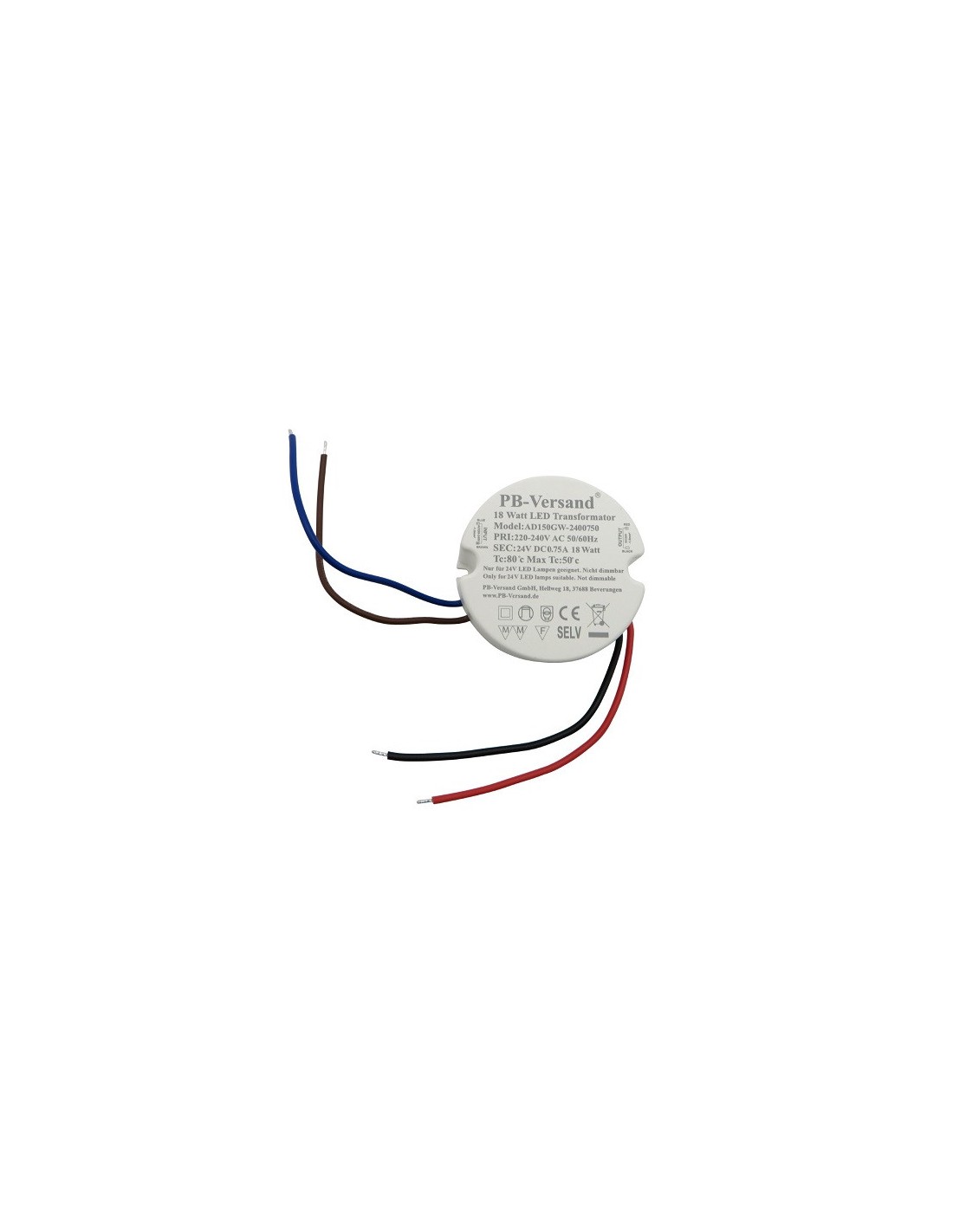 LED DC-Treiber/Trafo "Mini24-18W", 24V DC, 18W, 0.75A, 230V/24V, 18W, runde Bauform, Konstantspannung