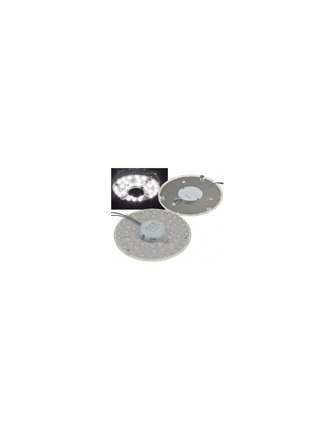 Mit diesem runden 18W LED Modul können Sie fast jede beliebige, runde Deckenleuchte auf LED Technik umrüsten. Das LED Modul verfügt über sehr leistungssarke SMDs (Typ: 2835). Sie haben ein angehmes Farblicht mit 2700K oder 4000 Kelvin. Die LED Ringlampe ist z.B. ein idealer Ersatz für Deckenleuchten, welche mit beispielsweise G10q Neonröhren ausgestattet sind. LED-Umrüstplatine, Modul, 18W, 18cm, mit 36 Led's, 230V, 2700K/4000K, 2'000Lm, inkl. Zubehör, 18 x 2.5, inkl. Trafo und Montagezubehör.